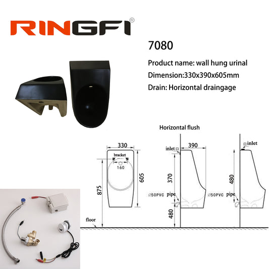 7080 white&black Wholesale high quality urinal cistern ceramic white sensor flush valve ceramic urinal bath wall hung ceramic urinal